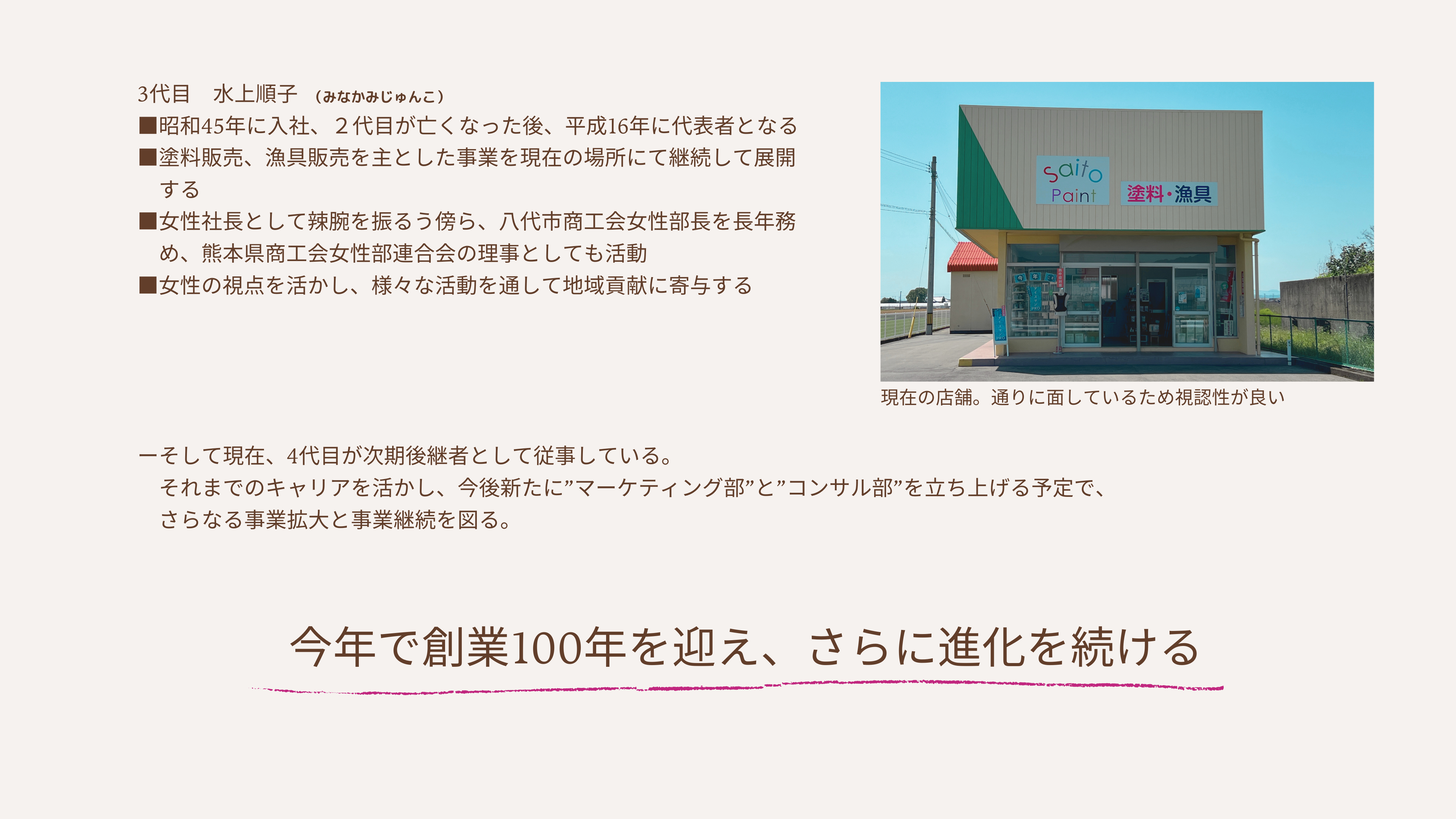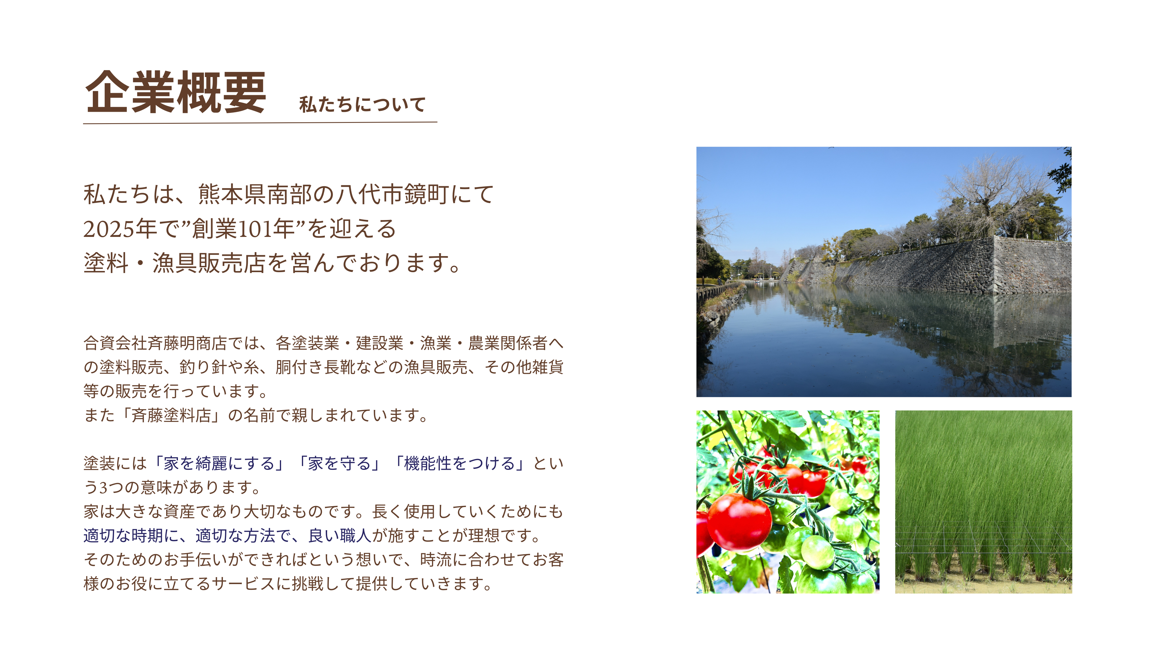 熊本県八代市の塗料店・漁具販売店 「塗料をもっと身近に」をモットーに情報発信中 ◆斉藤塗料店(愛称) ◆今年で創業101周年、法人化71周年 – 塗料の他の商品もあります。 4代目は音楽作家としても活躍中♪